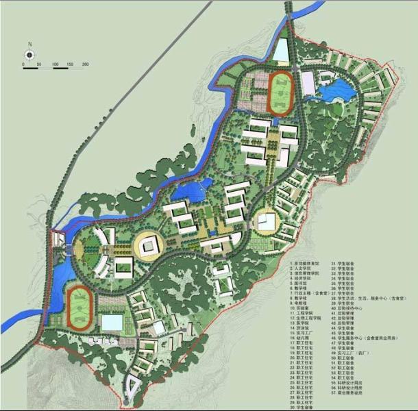 依山伴水:有坞泥河从东北方向直穿西南予园区护园,清水之中伴有当地水生鱼;后(东、南)有照壁岩山依于两侧,山峰之巅设有多处信号塔,3G宽带和无线网络已布及整个园区;环境的自我调节恰到好处,炎热之时将会天降甘霖润五谷,绸雨绵绵之时将会晴出阳光。曾有学生统计,炎热之雨通常会在凌晨四点至五点左右出现,这已成为一种自然的规律。