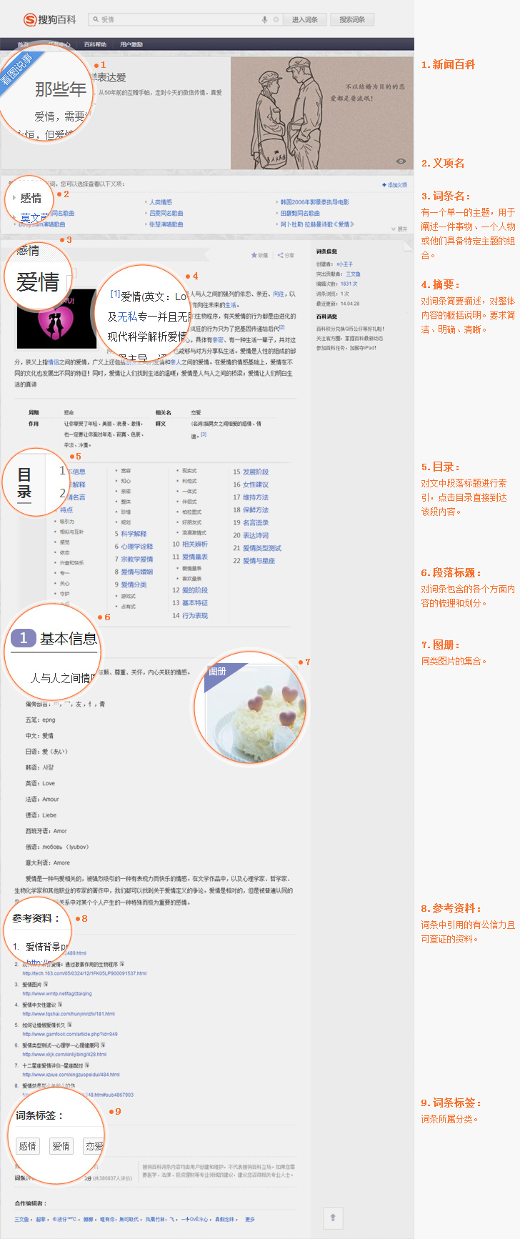 词条是组成这部网络百科全书的细胞,每一个词条都有一个单一的主题,用于阐述一件事物、一个人物、或他们具备特定主题的组合。