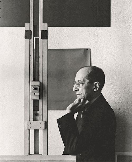 皮特·科内利斯·蒙德里安以三原色网格画闻名,并试图通过看似简单的几何元素来建立普遍的价值观和美学。其作品影响了后来的色域绘画、抽象表现主义、极简主义等艺术形式,以及设计、建筑、时尚等领域。代表作品有《拿着纱锭的女人》《黑白双线构成》《灰色的树》《黄昏的磨坊》等3。